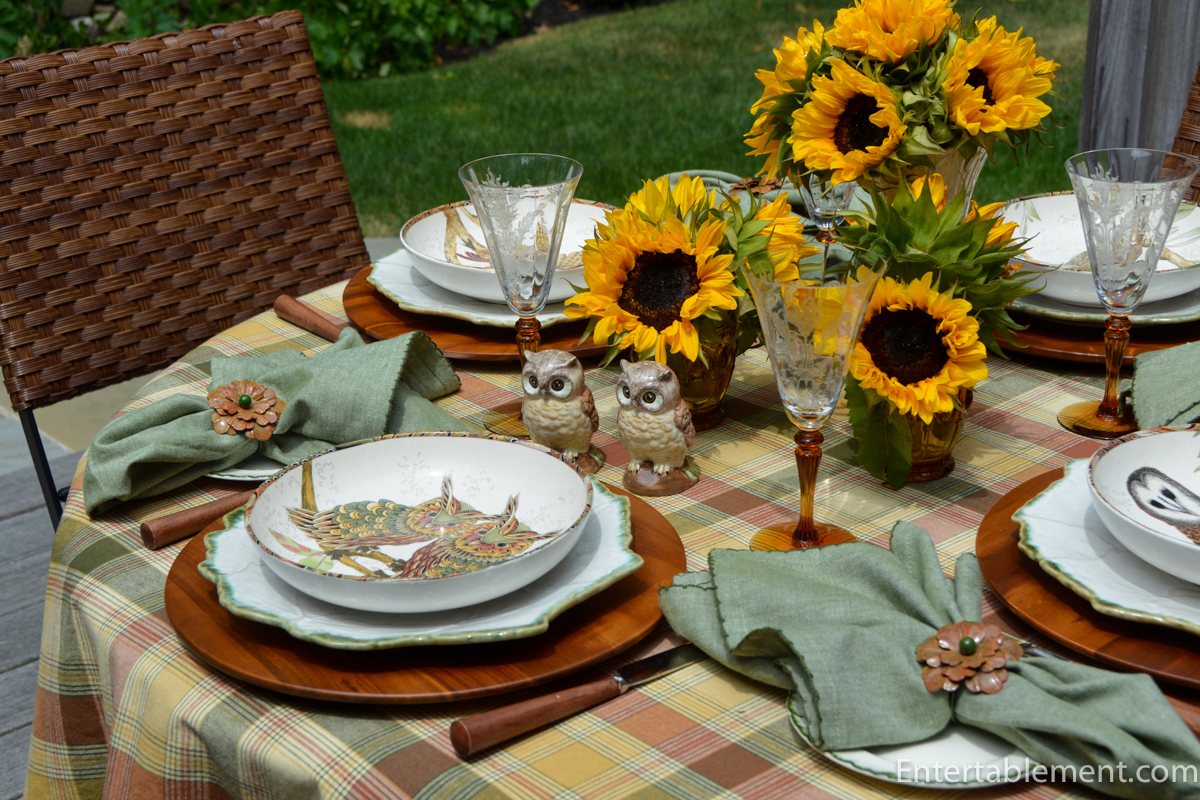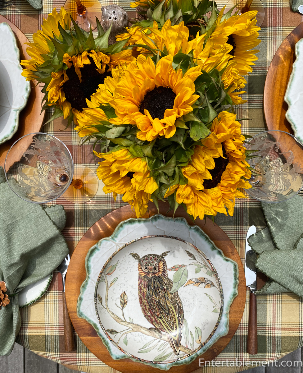 Beautiful Helen. I remember this collection from WS and you are right in that it didn’t last long. I think I managed a table runner and some napkins but none of the plates were available. You have set them to perfection here with the plaid tablecloth and those happy sunflowers. Love the flatware and the charger plates too. So pretty, all of it!