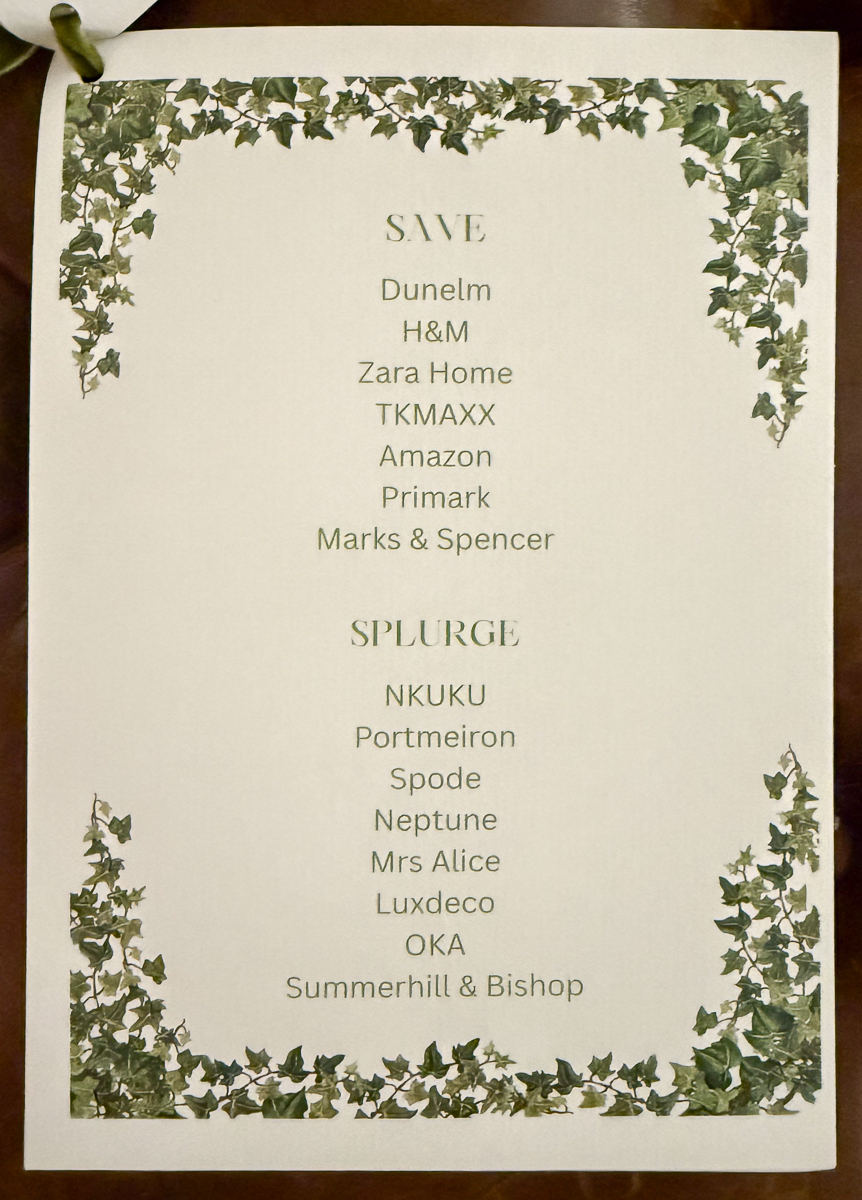 She also gave us a list of her “save” and “splurge sources.