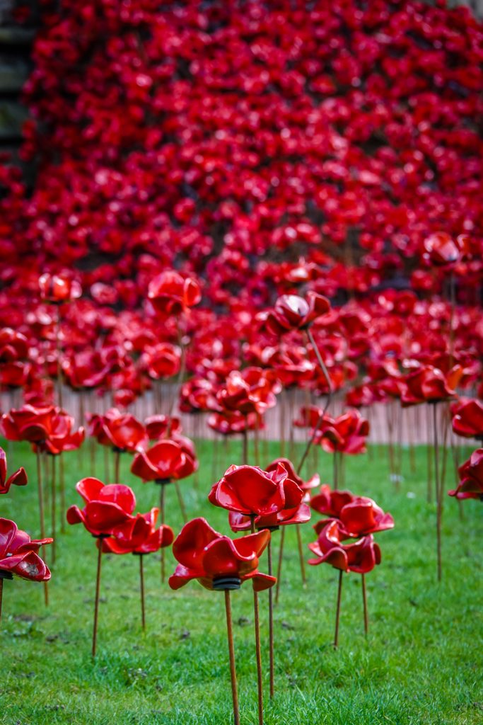 The poppies were installed by volunteers, each at a rate of about 500 per day.