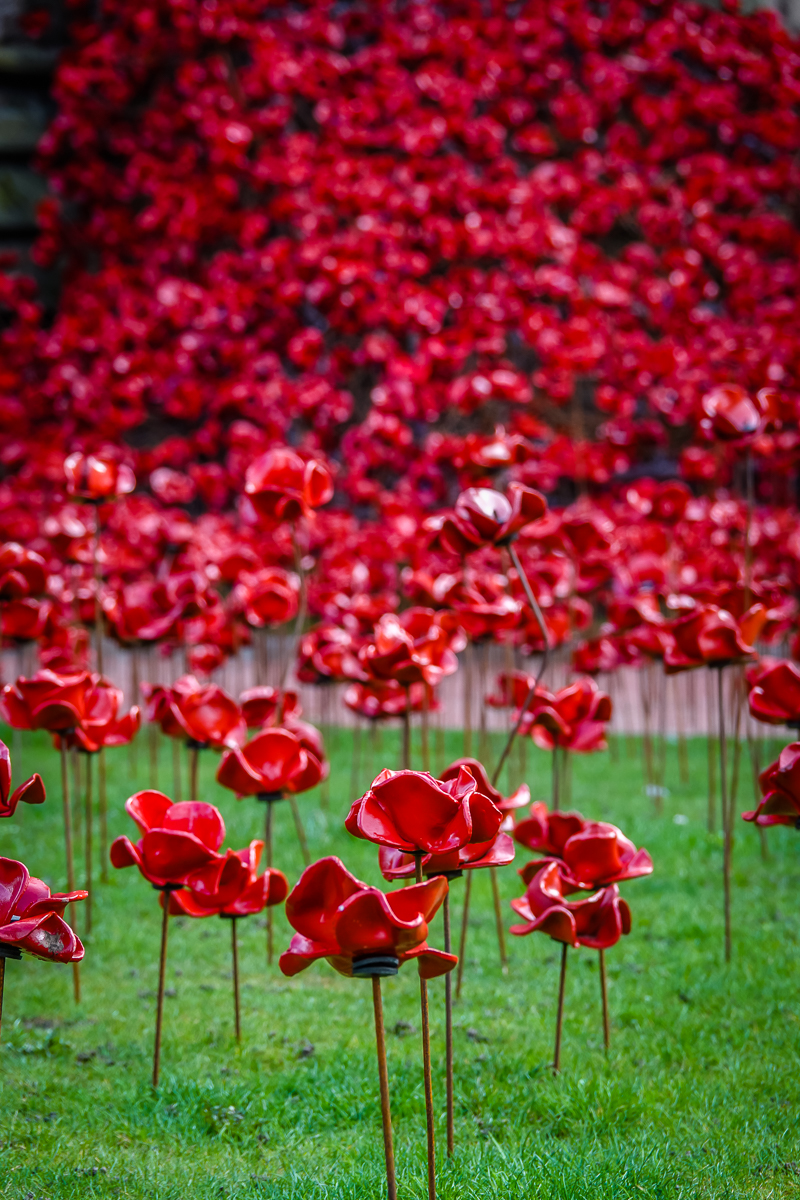 The poppies and original concept were by artist Paul Cummins, and Tom Piper designed the installation in conjunction with Historic Royal Palaces. Each one comprises a set of red ceramic petals placed carefully on a steel “stem”, and then a central black ceramic piece is screwed on top to keep the petals in place.