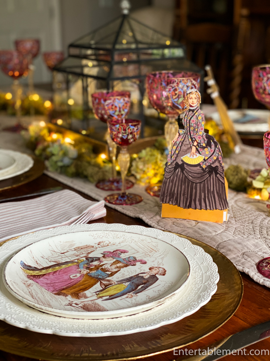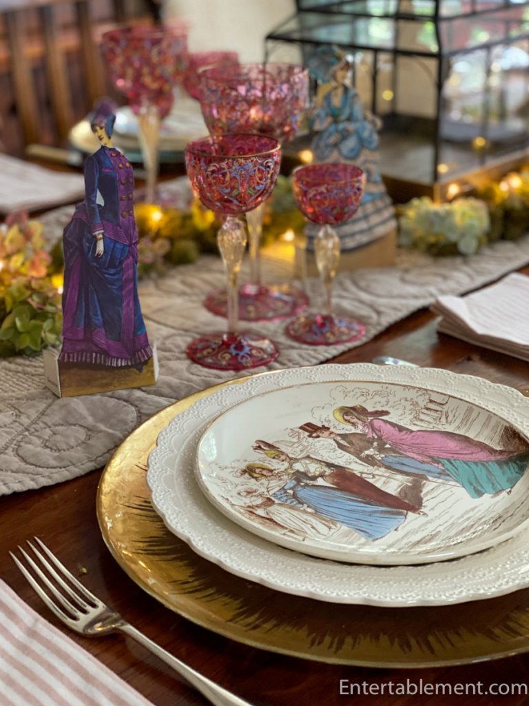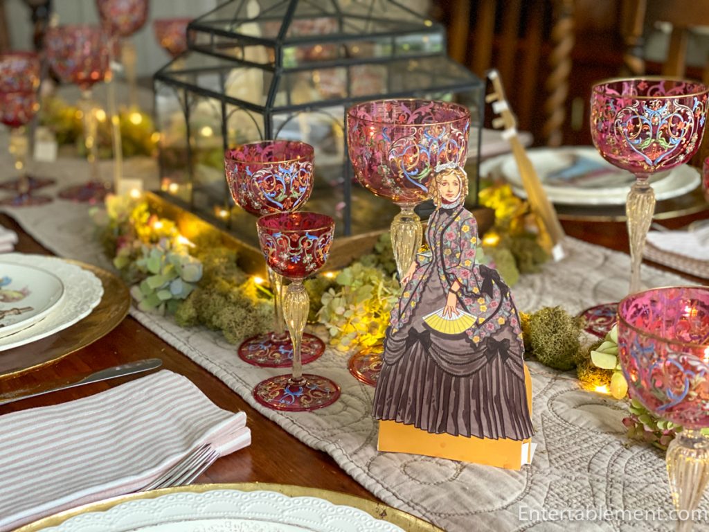 What a wonderful table! I love the history and the table itself! Your glassware is stunning, and I love the standing figures. The whole package is really fabulous,Helen! Thanks for another beautiful, inspiring, and fascinating table!