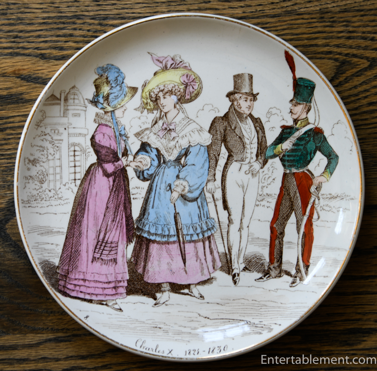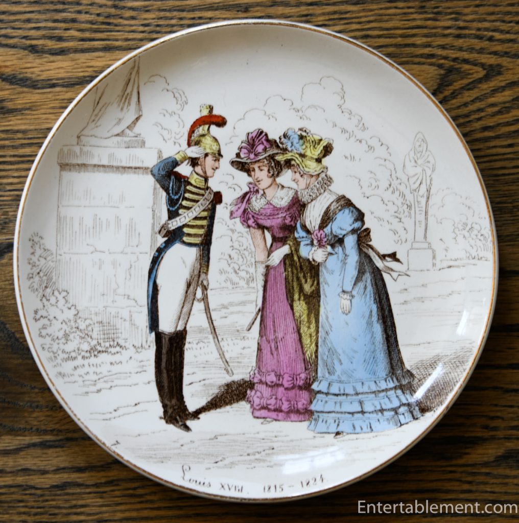 Originally featured in Much Depends on Dinner, the inspiration comes from a series of French faience plates titled Le Monde Depuis Cent Ans, produced by Creil et Montereau. Translated as The World Over the Last Hundred Years, the series tells the story of a century of French life through dress — featuring people promenading, conversing, and being seen.